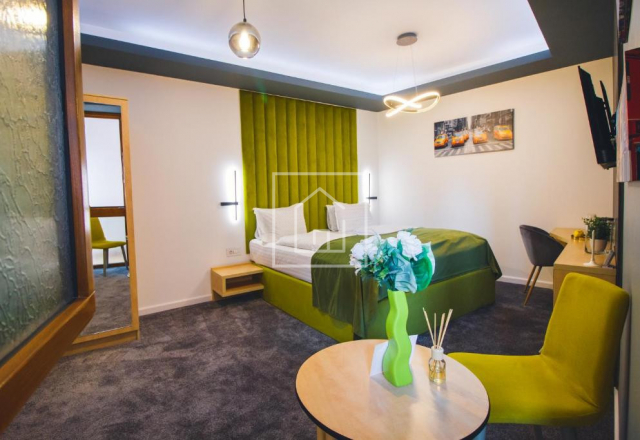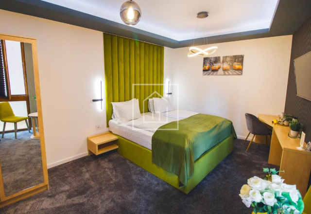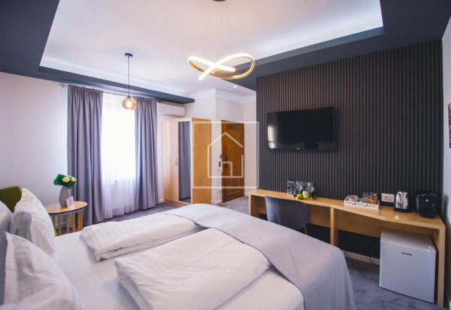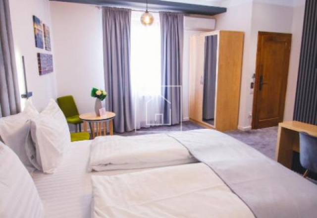 Este finisat complet la cheie, cu materiale si dotari de calitate superioara, mobilat si echipat integral, amenajat special pentru regim hotelier. Activitatea poate fi continuata din prima zi, fara investitii suplimentare, fara pauze si fara riscuri de pornire.