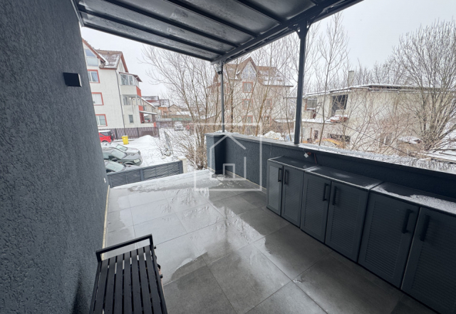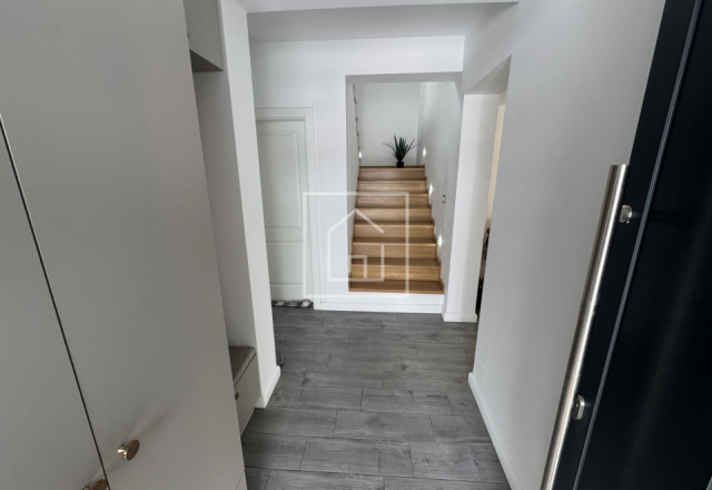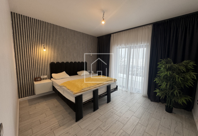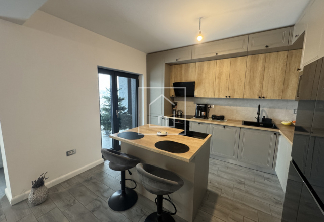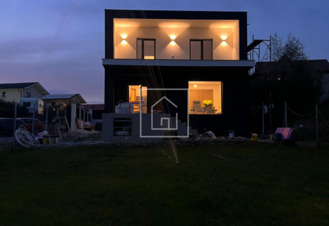 Casa este finalizata cu succes in anul 2024, avand o suprafata utila de 126 mp si fiind dispusa pe parter inalt si etaj. Arhitectura este moderna, cu influente mediteraneene, iar acoperisul este de tip terasa cu panta usoara, realizata corect din punct de vedere tehnic, specific acestui stil. Proprietatea beneficiaza de o panorama superba asupra orasului si a muntilor, oferind un sentiment real de spatiu si liniste.