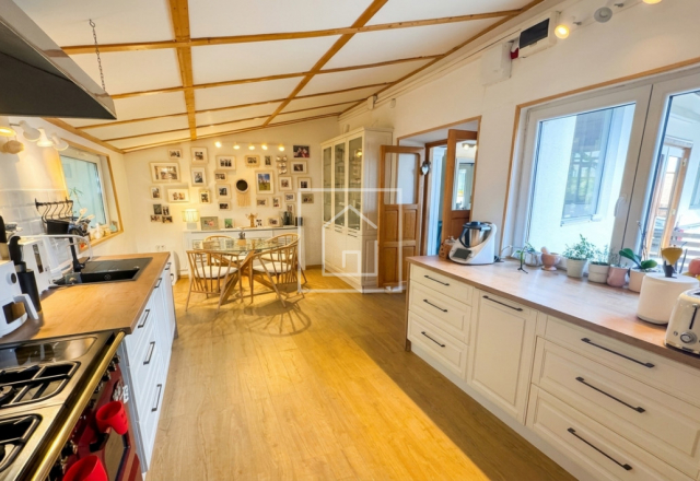 Parterul este completat de o bucatarie moderna cu aragaz Falcon, camara, baie cu dus walk-in si dressing generos.
